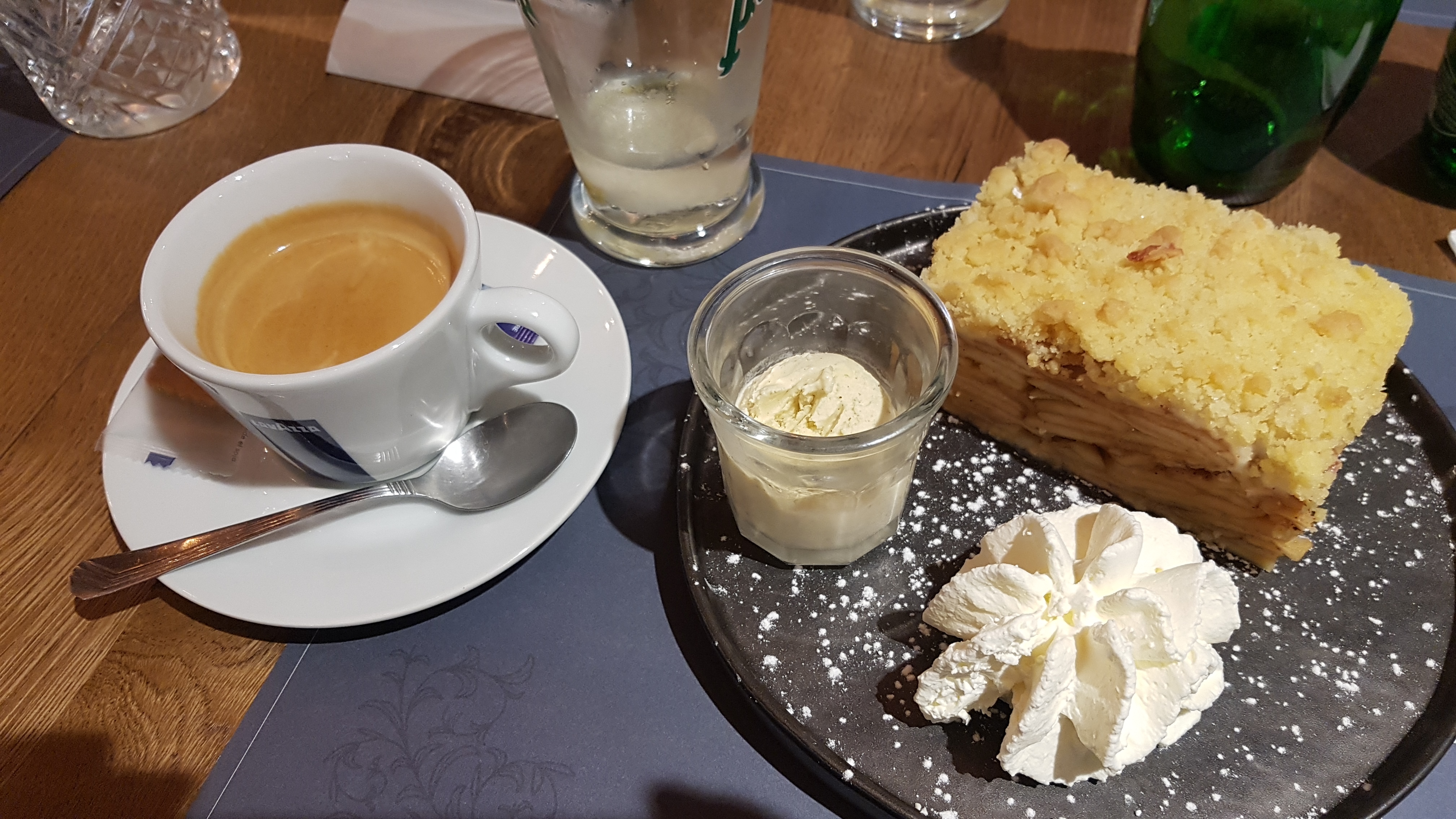 1 bon moment dans ce nouveau lieu Ma grand mère faisait des pierogis plus gros et plus garnis lol 🤣🤣🤣 Je me suis régalée qd mm J ai adoré le sourire et la sympathie de la serveuse d aujourd'hui (13h table 20)👍👍👍 À bientôt J ai demandé 1 doggy-bag pour mon dessert lol Énorme !! 🤣😋 Attention ! N allez pas là-bas pour en avoir plein l estomac !!! Les assiettes ne sont pas trop garnies !!!
