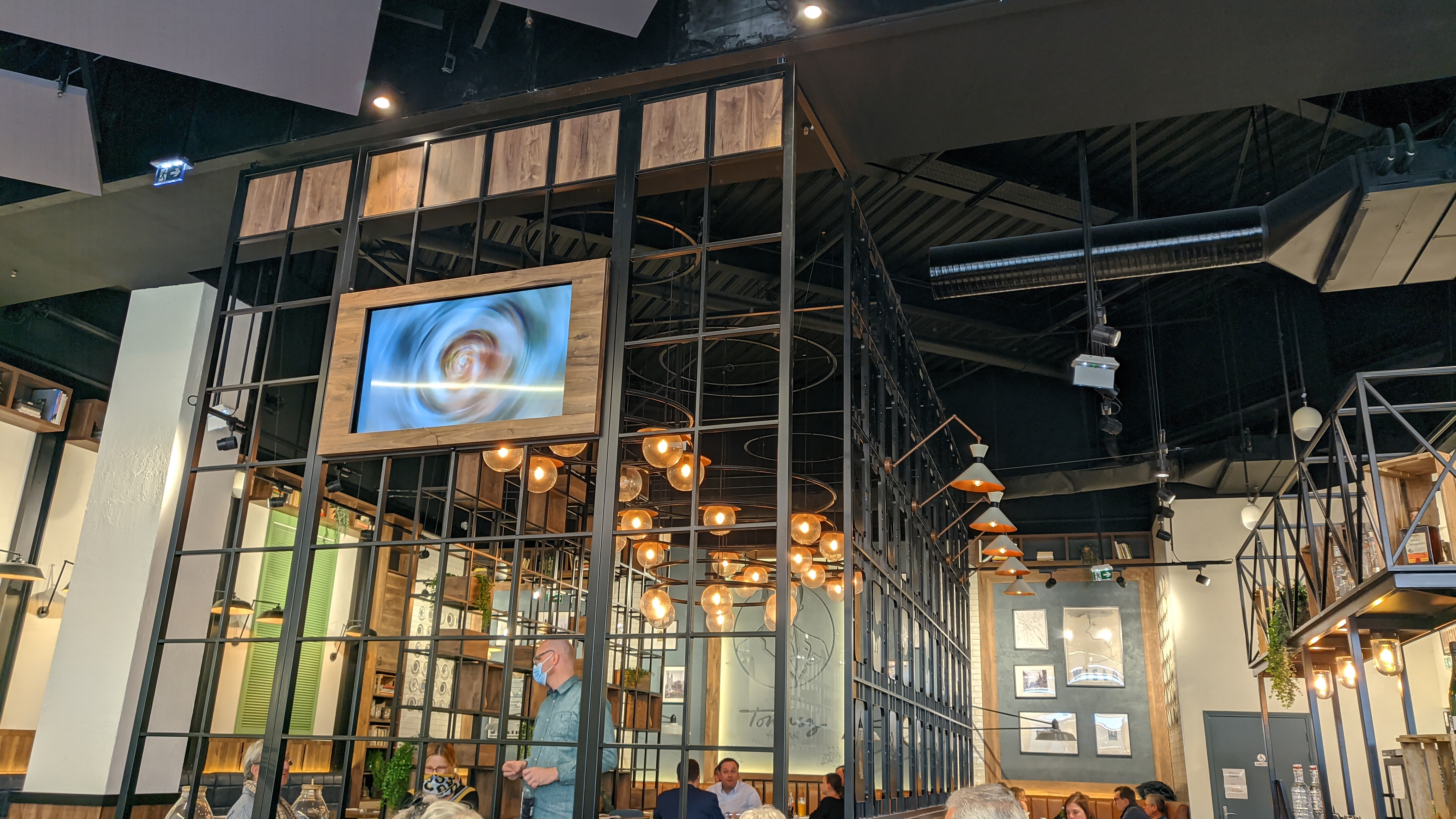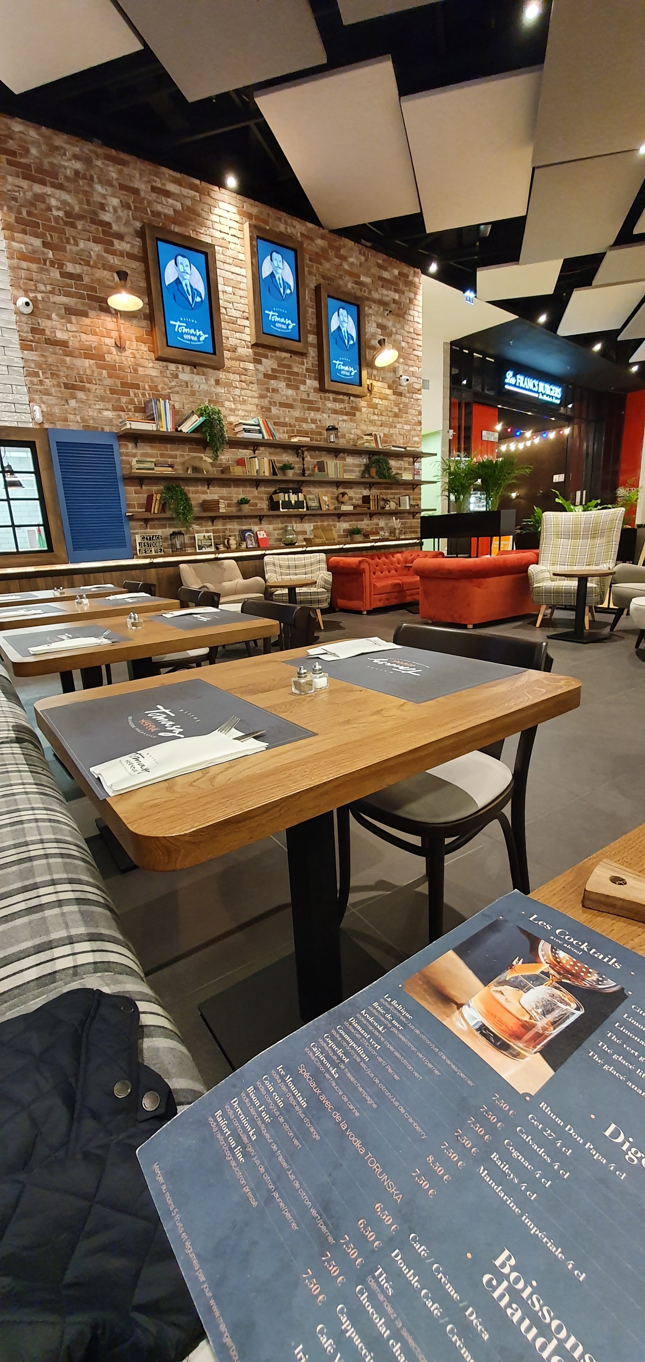 Endroit sympathique une touche rétro industriel qui rend l'endroit chaleureux qui sort du cadre du centre commercial bonne boisson home made citronnade pour ma part énormément de désert au choix et polish food moderniser et une addition pour deux assez doux boisson home made, plat, supplément, dessert à conseiller
