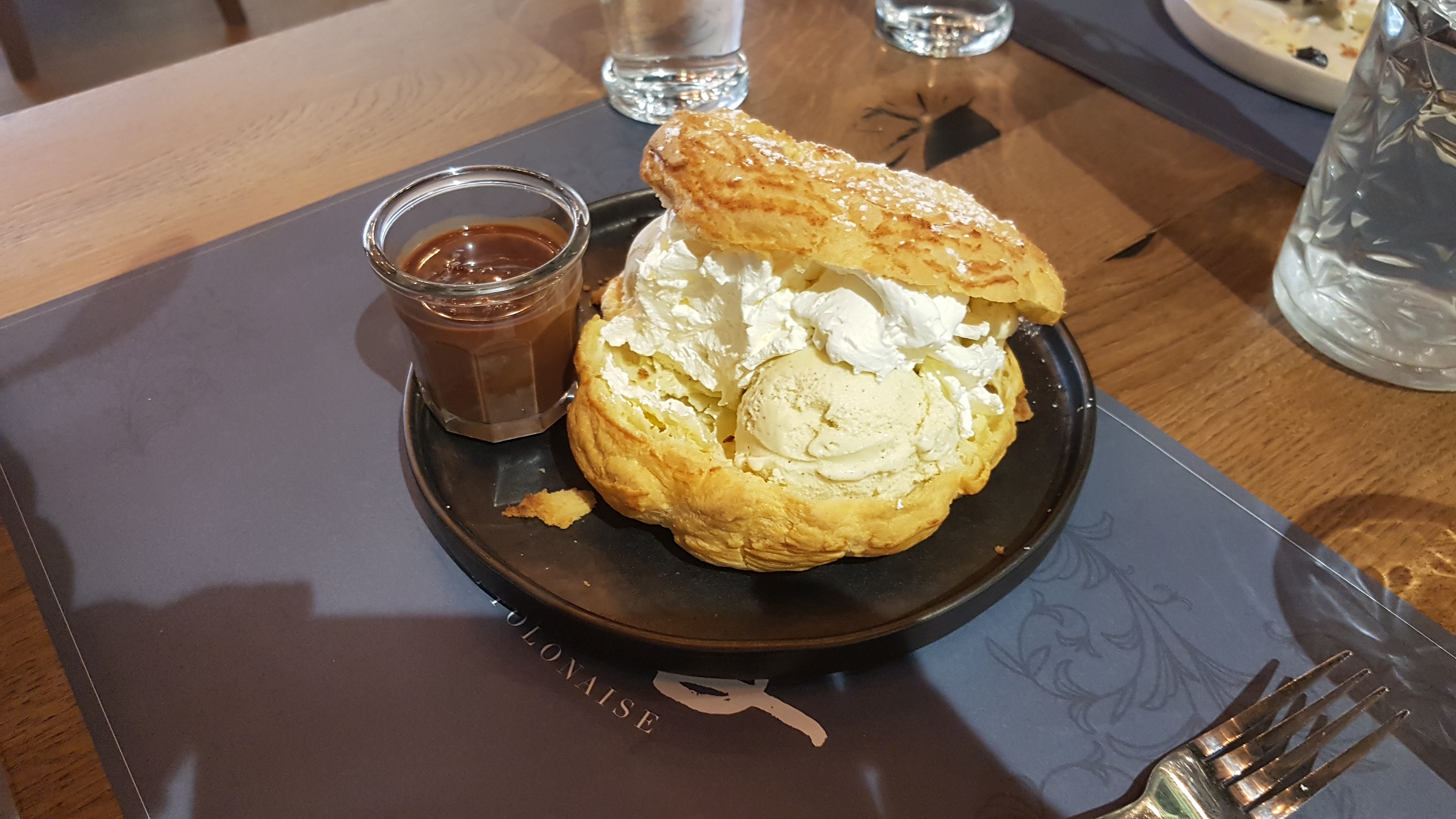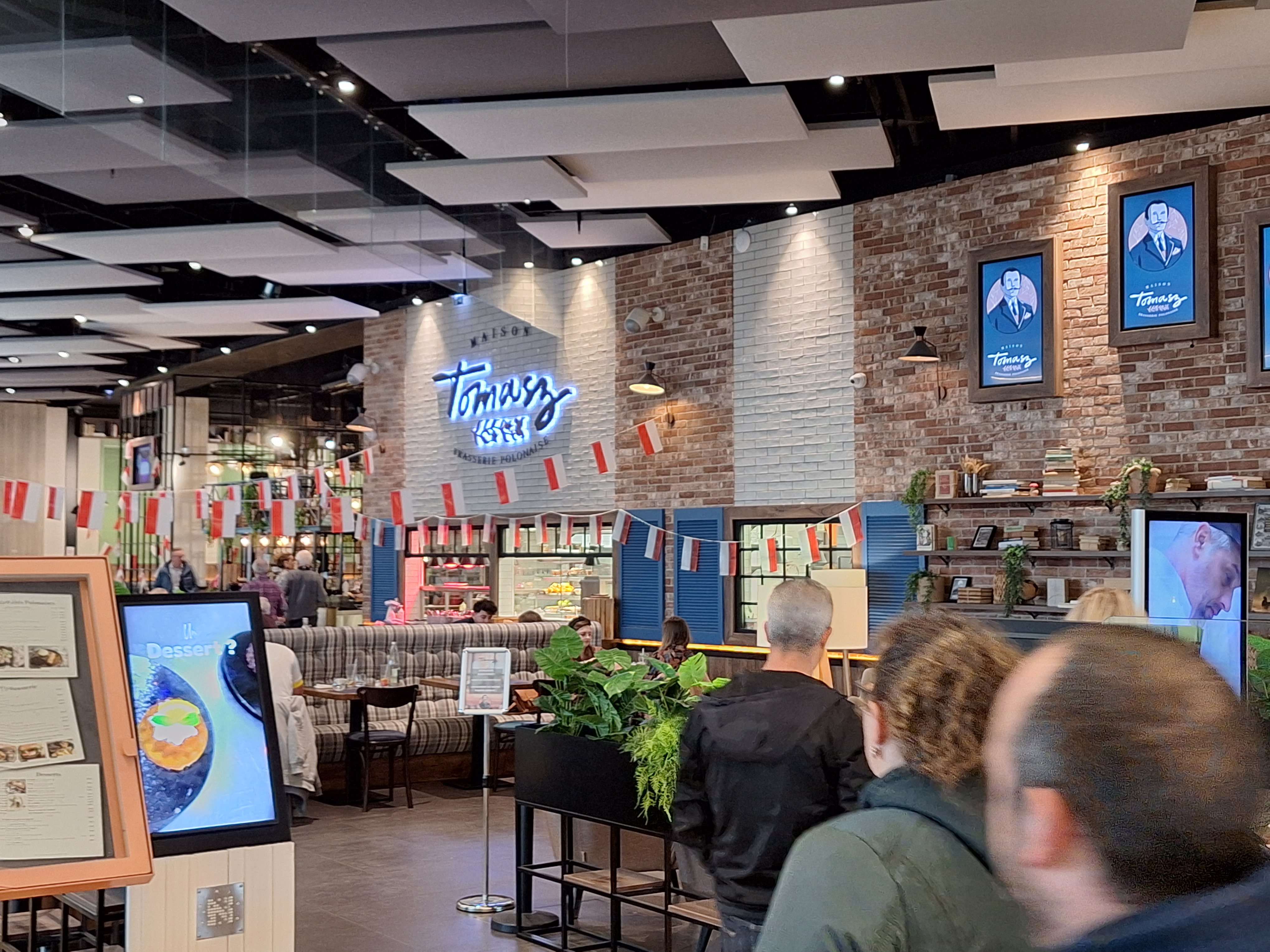 Accueil sympathique et souriant. Service adapté. Bien installés en terrasse avec vue sur la galerie marchande (une première pour moi 😅) une belle découverte de plats et desserts. Pour des plats polonais, je les ai trouvé plutôt équilibrés et pas trop gras. Bilan 50 euros pour 2 boissons, plats, desserts